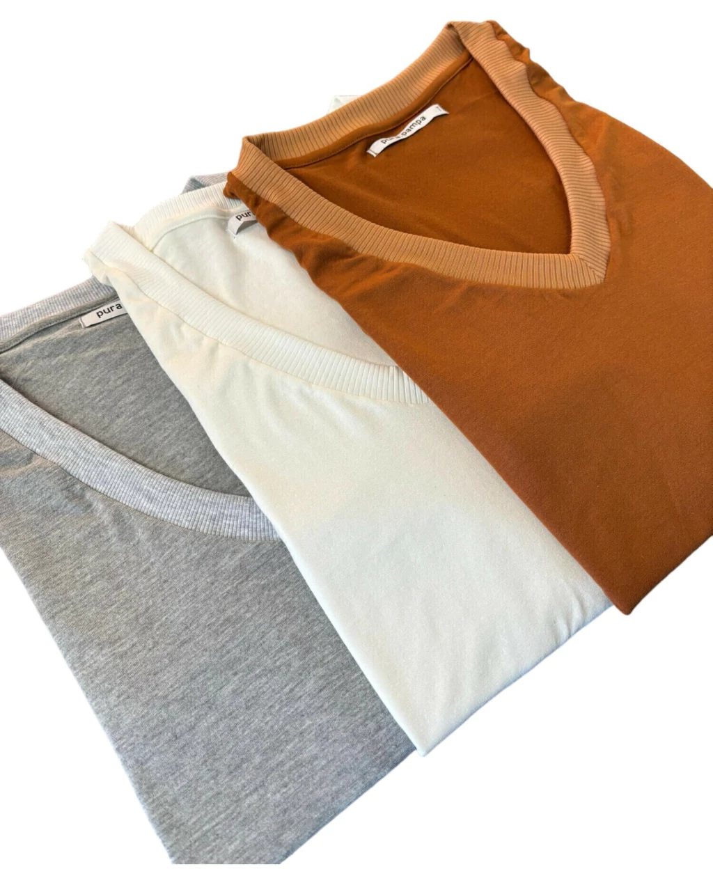 DESCRIPCIÓN: Remera manga corta confeccionada en viscosa con lycra. Escote en "V". Cuello y puños de ribb. Silueta recta.