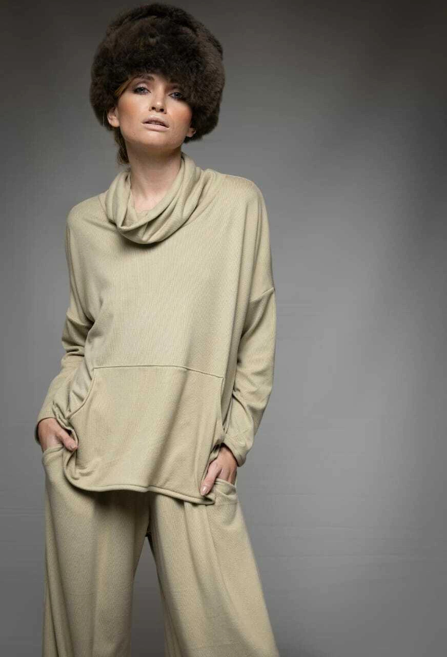 Sweater confeccioando en Algodón rústico . Bolsillos al frente y cuello